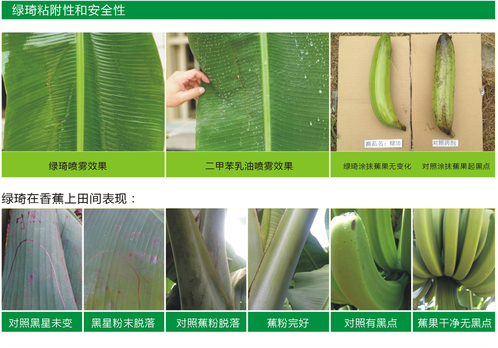 香蕉 | 叶斑病、黑星病 | 15片叶-抽穗前5-8ml/桶,蕾期5ml/桶 |