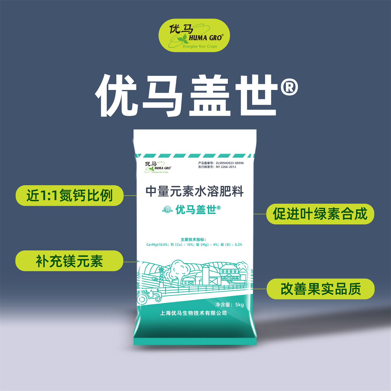 优马盖世®是优马公司(BHN)出品的针对性解决氮钙镁营养吸收的水溶性肥料。