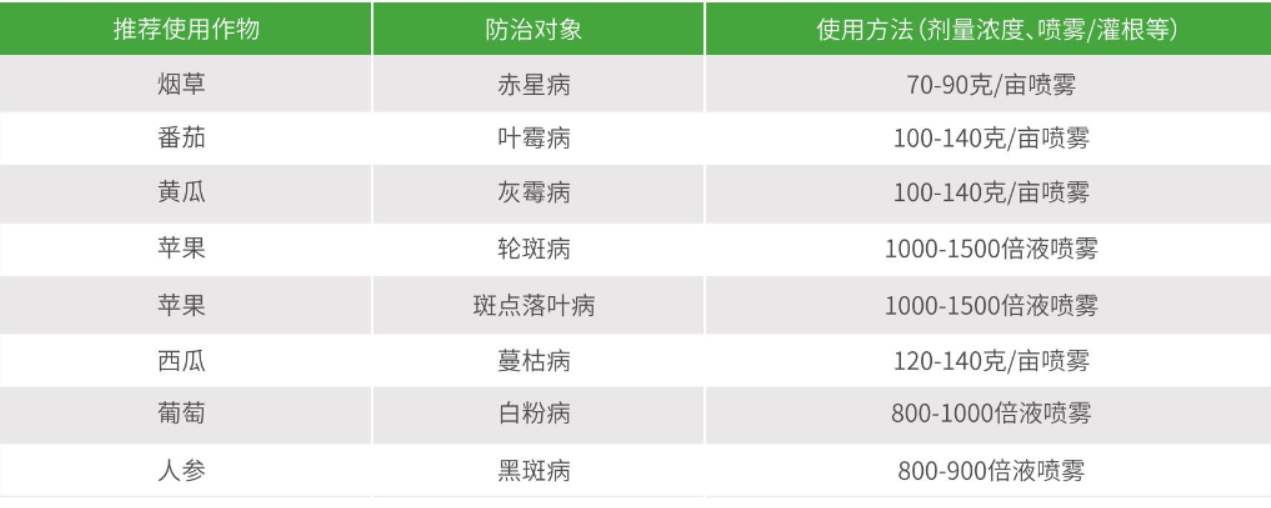 2、对植物各种病害具有较好的杀菌作用,并有预防和治疗双重功效;